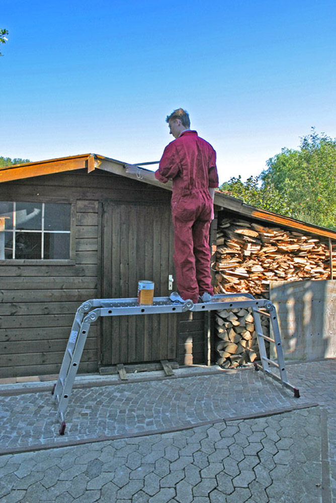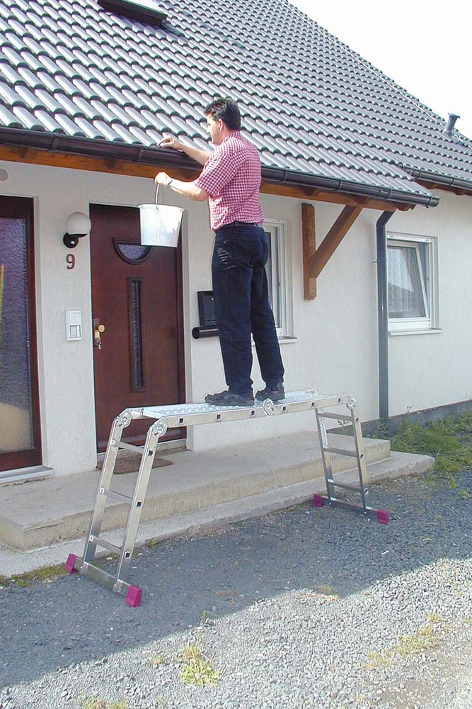 Хорошая лестница для дома. Пользовался и в гараже и в саду. Но для ремонта не подходит. Мои мастера ее убили за год. Не знаю, что они с ней делали, но вырвана ручка-фиксатор шарнира. Теперь приходится отверткой его фиксировать. Плюс шарниры засраны каким то раствором. Короче, на ремонт она не подходит. Нужно брать какой то помост.